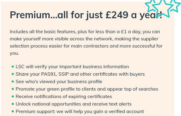 They can add more than 4 trades/services to their profile, they are able to add more than one office address. Both of these allow suppliers to be picked up by more EOIs/Enquires. Their Insurances and Certificates are verified by the LSC team to confirm the documents are valid and in date, this is what gives them a green profile.