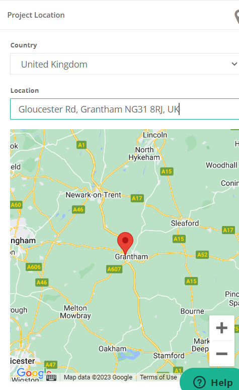 When creating your project and adding in your project location, you can search via country 'UK or Ireland' and location, you can search by Region and Postal Code.